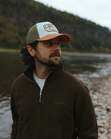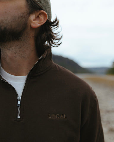 A true American staple. This quarter-zip is midweight and lined with fleece, making it perfect for layering under a jacket or as a stand-alone piece once you’re indoors. It’s monochrome embroidery provided the subtly you’re looking for in such a versatile piece